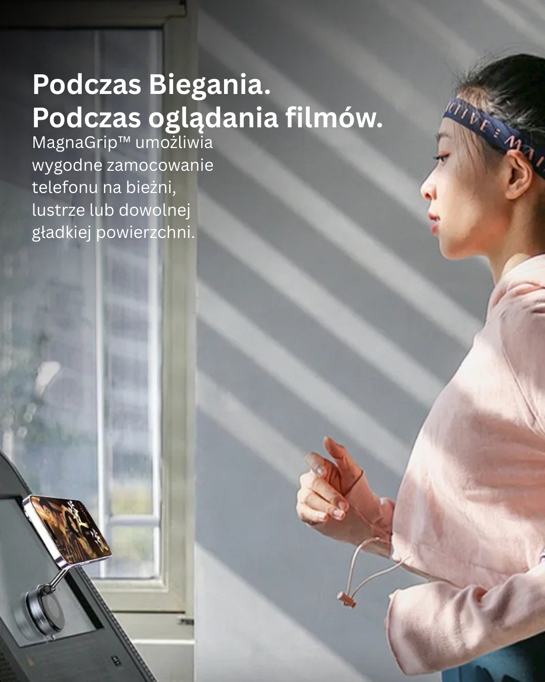 Tak! MagnaGrip™ posiada 360° obrotu i 180° składany przegub, dzięki czemu ustawisz telefon dokładnie tak, jak chcesz.