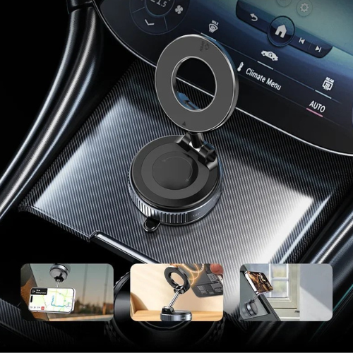 Dzięki silnym magnesom MagSafe i próżniowej przyssawce Twój smartfon pozostaje na miejscu — nawet na pionowych powierzchniach.